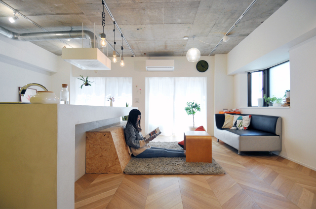 築41年の中古マンション(2LDK 約57㎡)を、住まい手のライフスタイルに合わせてミッドセンチュリー風の1LDKへとリノベーションした事例です。