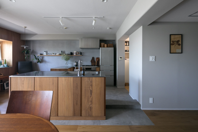 「キッチンに住みたい」というほどの料理好きという施主のご希望を反映し、「キッチンを住まいの中心にした空間づくり」をコンセプトにデザイン。
