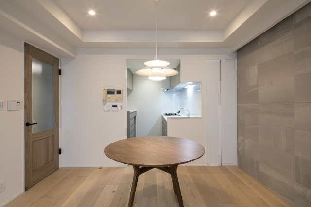 洗練された雰囲気の空間の演出には、家具や壁の素材(質感)や色との光の相性へ考慮することも必要です。