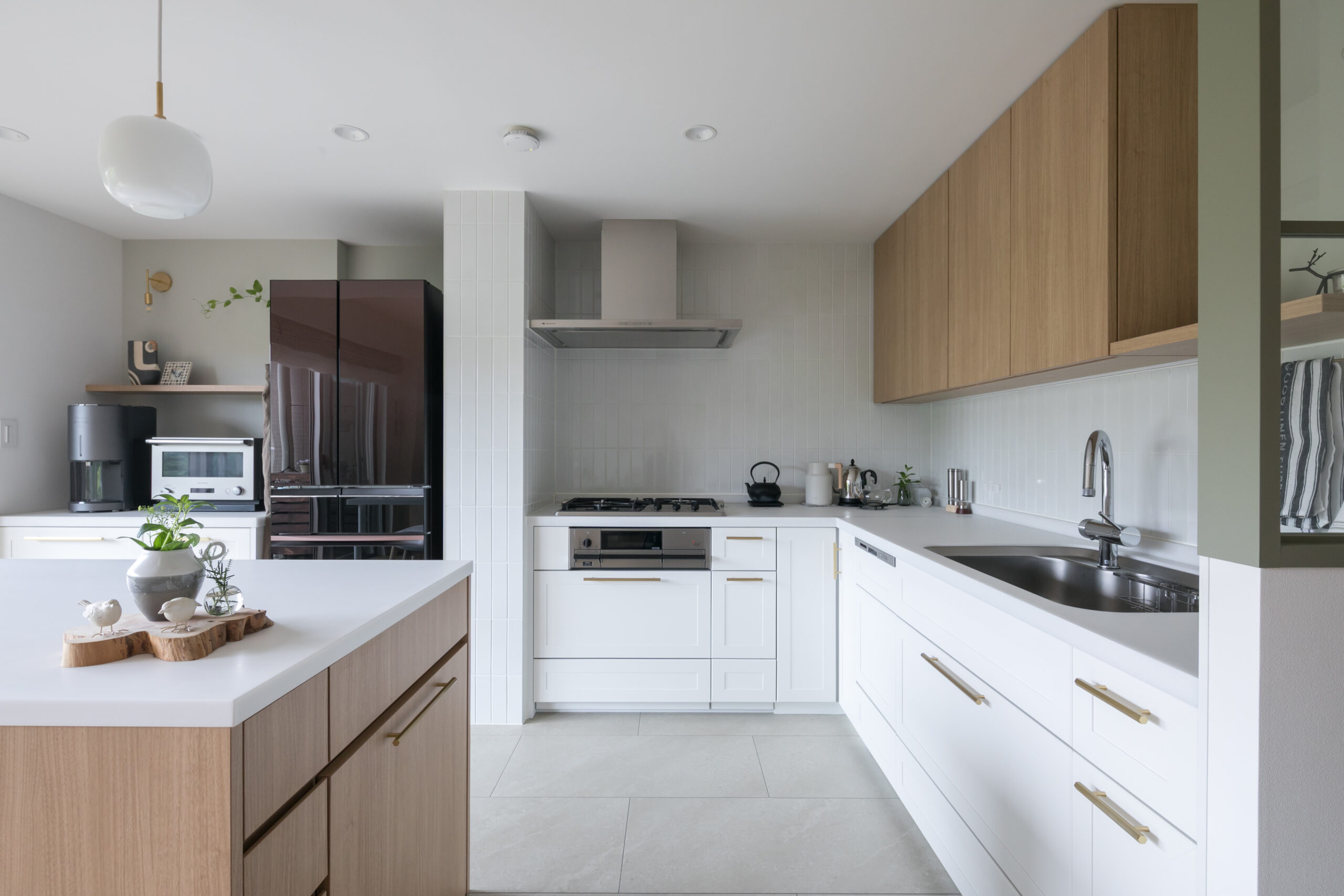 キッチンのレイアウトを大きく見直し、壁付のL型配置に変更することで広々と使いやすい形に。