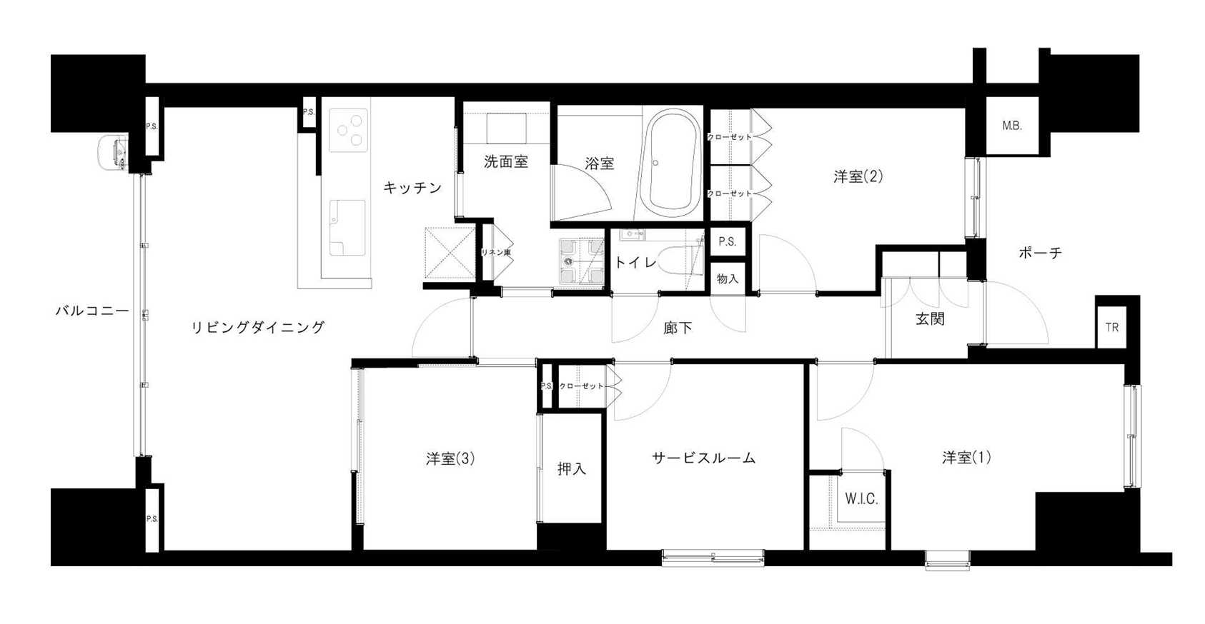 3LDK+サービスルームの既存間取り。