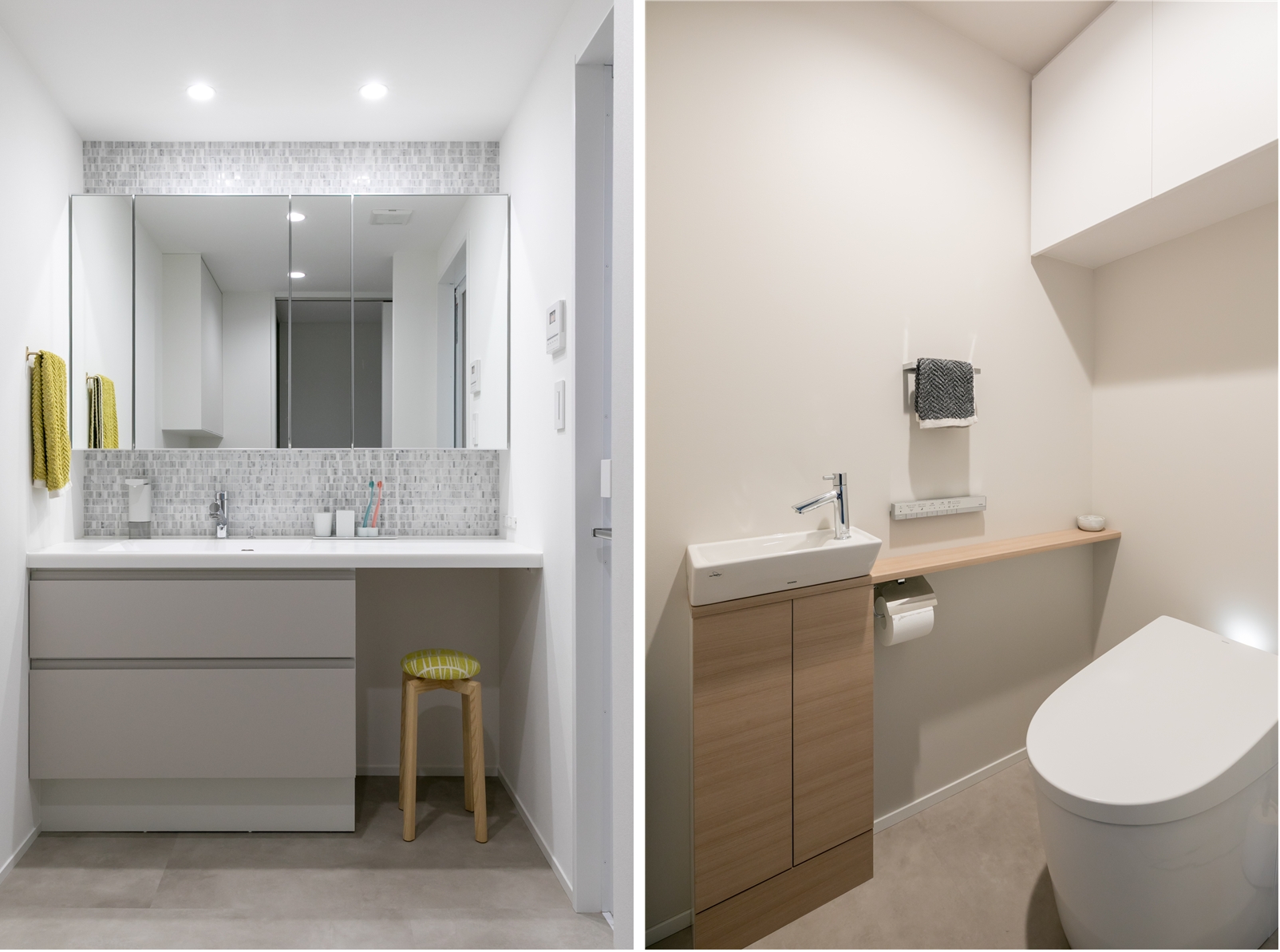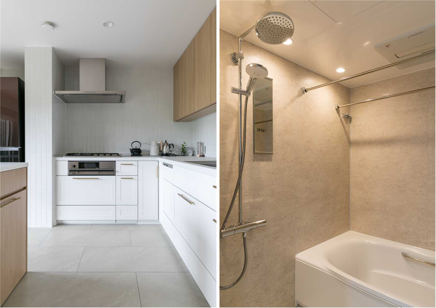 浴室はお部屋の雰囲気に合わせた柔らかいグレージュで統一。