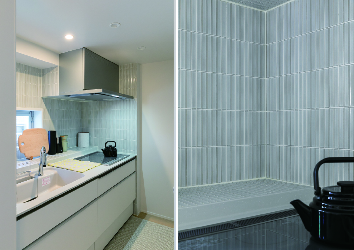 その空間に自然と馴染むよう、タイルやアクセサリーでさりげなく彩りを添えています。