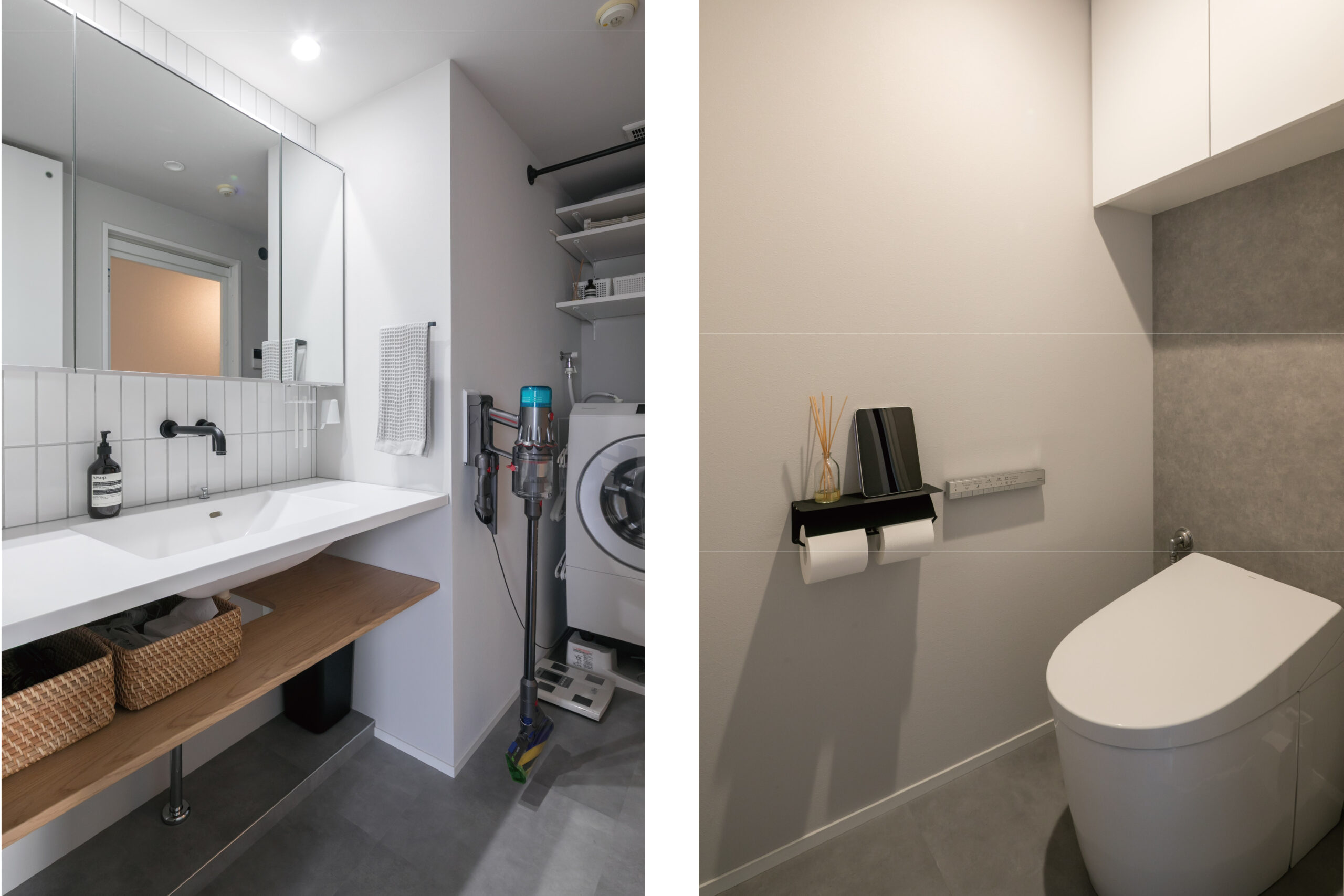 洗面台は、旅先のホテルで思い描いてきた理想を形にした、お気に入りの場所となりました。