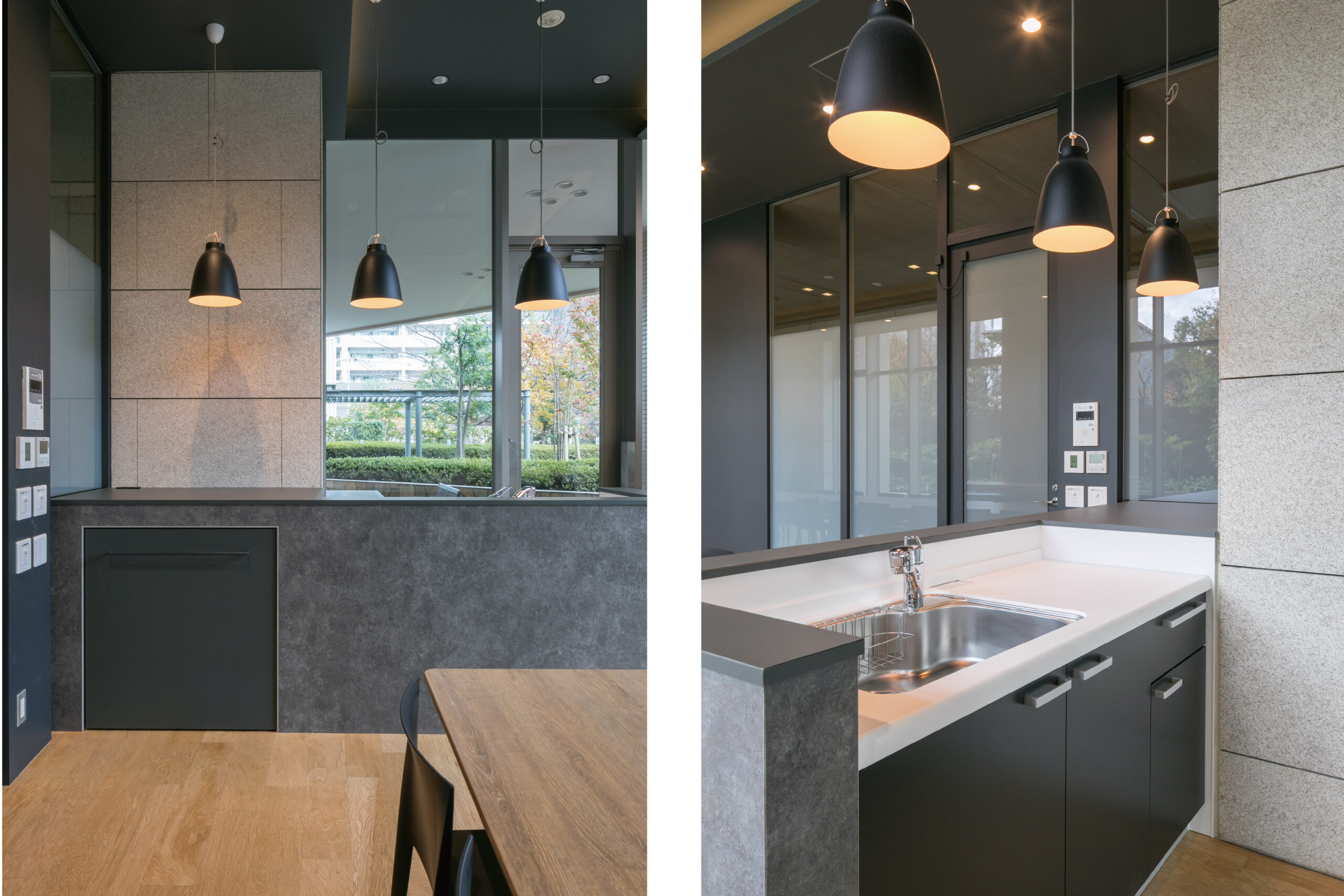 空間デザインの軸としたのは、“木目 × ブラック”のシックなスタイル。