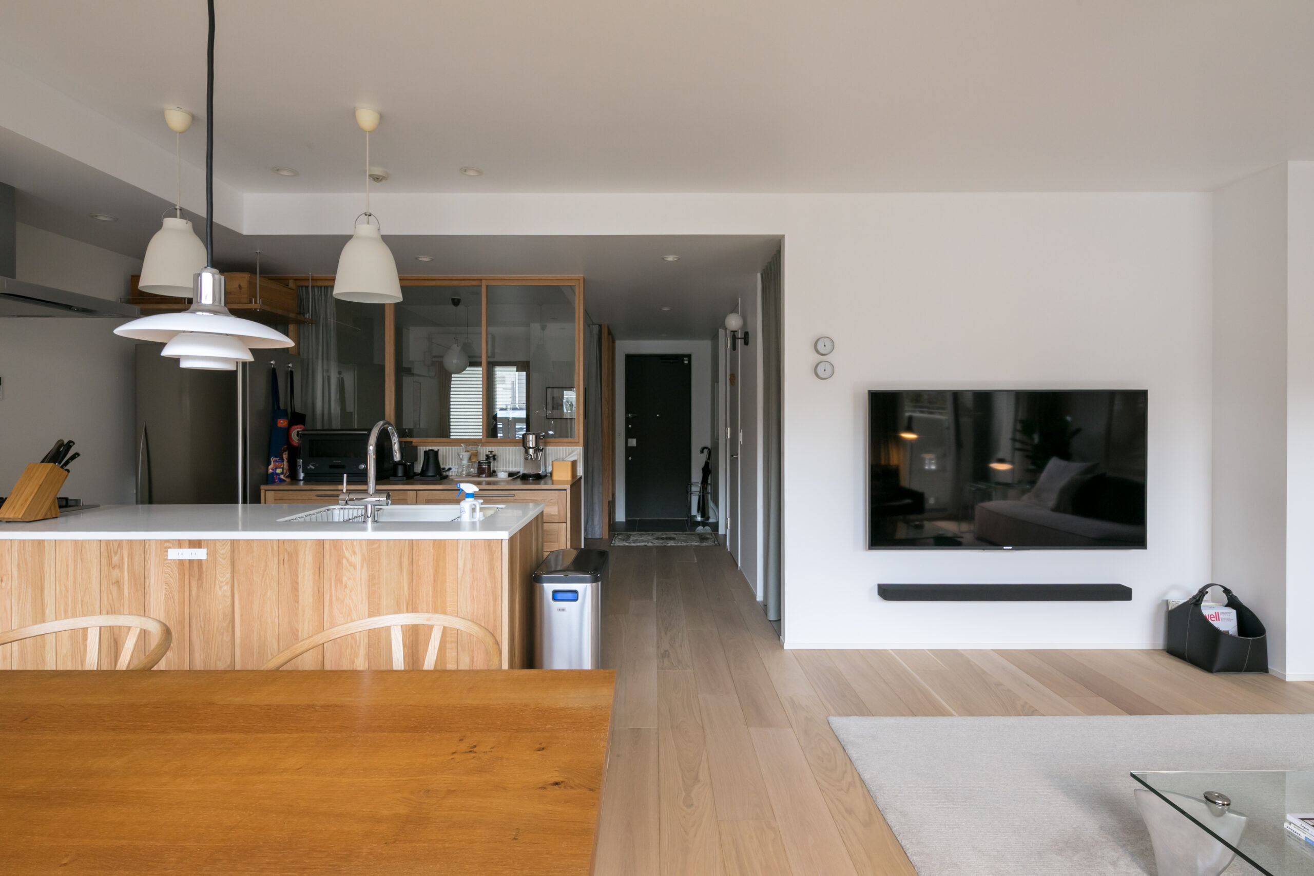 視線が住まいの端まで抜けるようになり、どこにいても光と気配を感じられる住環境を実現しました。